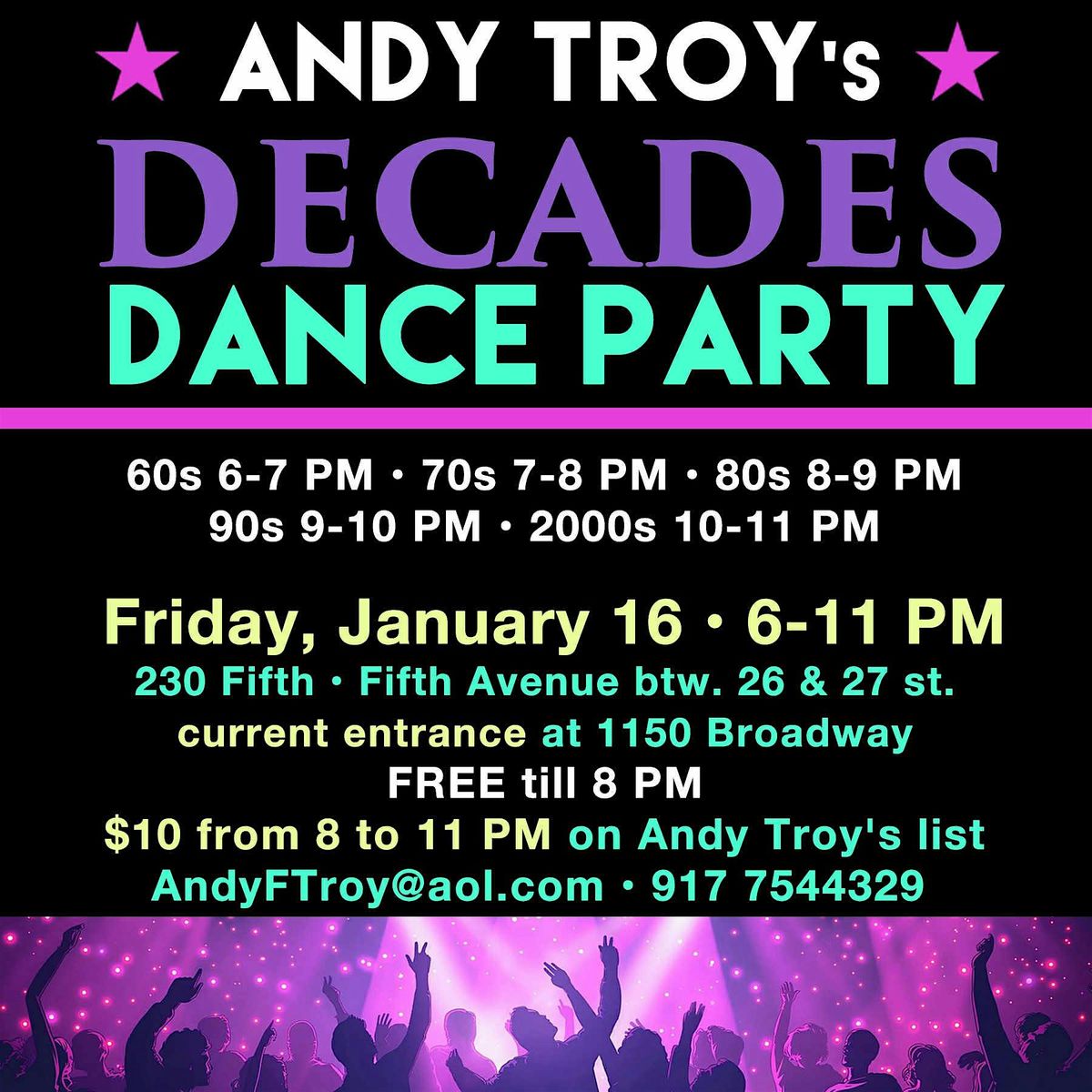 Welcome to 2026! Say You're There for Andy Troy's party and admission is FREE til 8 PM, $10 from 8-11 PM. The general public pays $20 so mention Andy Troy & party like a VIP!