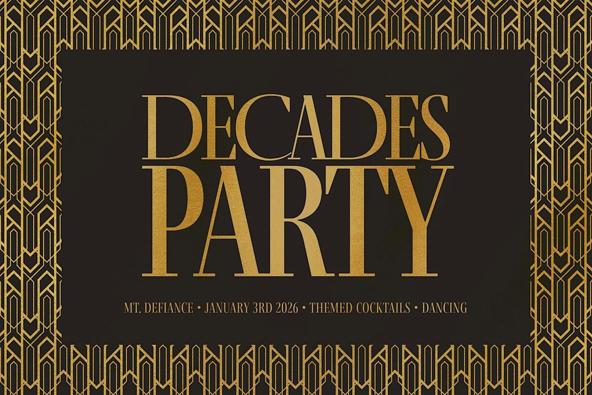 Get ready to travel through time at our super fun Decades Party! Dress up in your favorite era's style and groove to the coolest tunes from the past. Tickets include, appetizers, dancing, sparkling toast and a blast from the past! Don’t miss out on a night full of laughs, nostalgia, and great vibes!