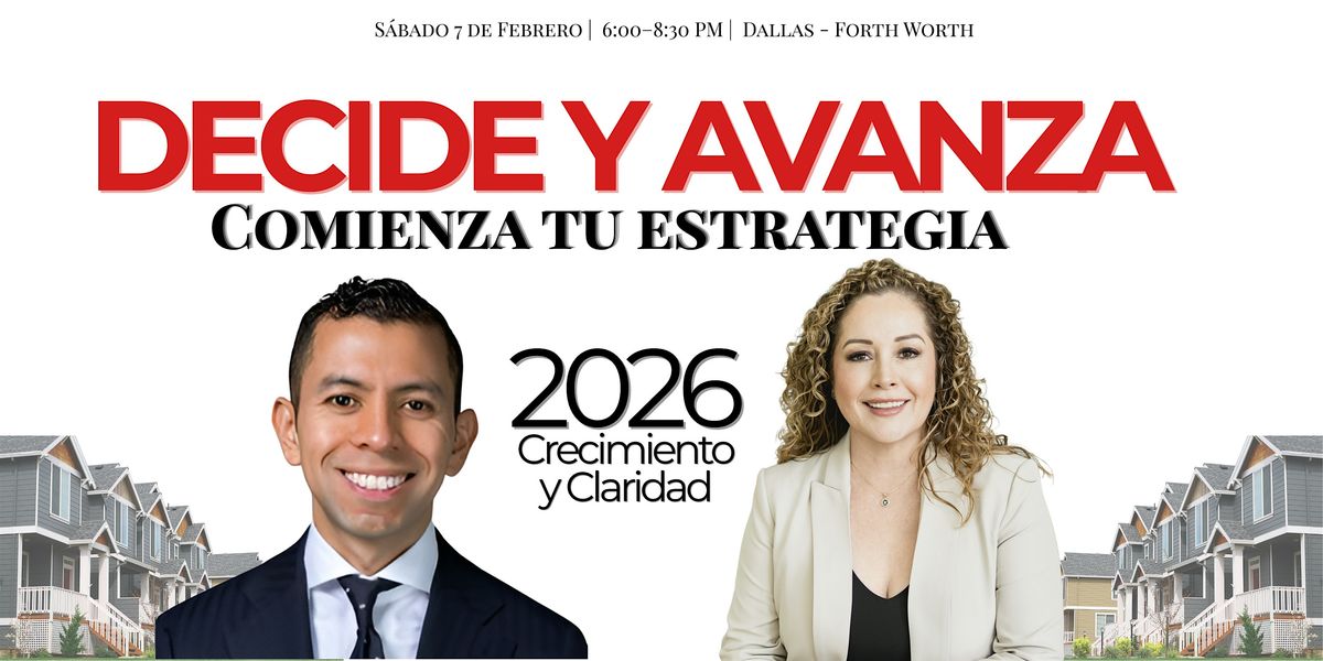 DECIDE Y AVANZA es un evento presencial en Dallas-Fort Worth Metroplex para familias latinas que quieren crecer su patrimonio y construir un legado, utilizando bienes raíces como una estrategia clara y segura.