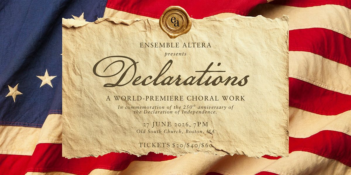Spanning 75 minutes without intermission, Declarations is a bold and deeply human meditation on the Declaration of Independence—its creation, ideals, contradictions, and ongoing legacy. Drawing on a rich tapestry of texts, from Thomas Jefferson and Langston Hughes, to contemporary voices including Tracy K. Smith, dg nanouk okpik, and William Ashford, among others, the work refracts 250 years of history through a modern, emotionally powerful lens.