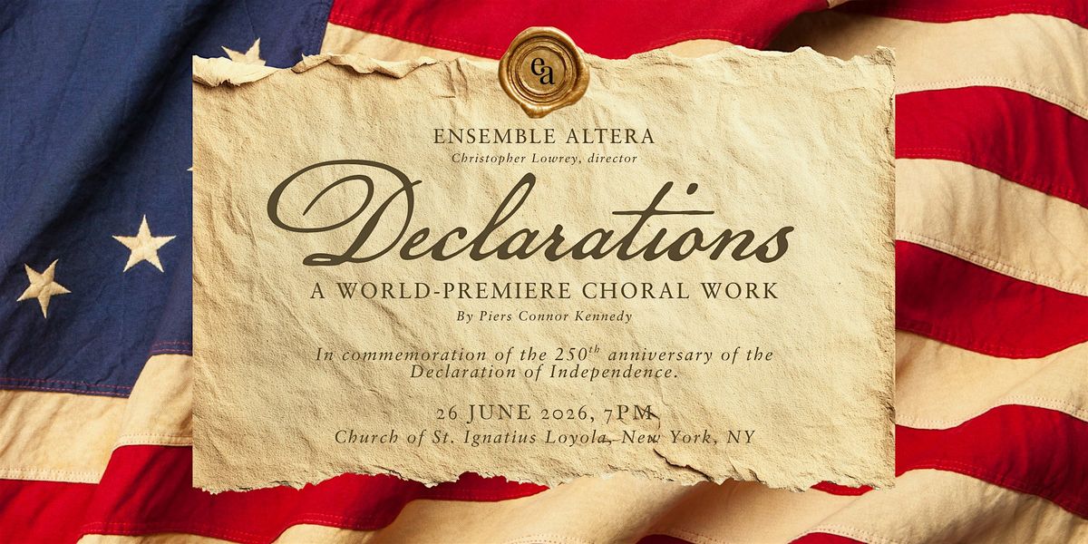 Ensemble Altera, one of today’s most compelling professional chamber choirs, makes its New York City debut with the world premiere of Declarations, a major new choral work by Piers Connor Kennedy.