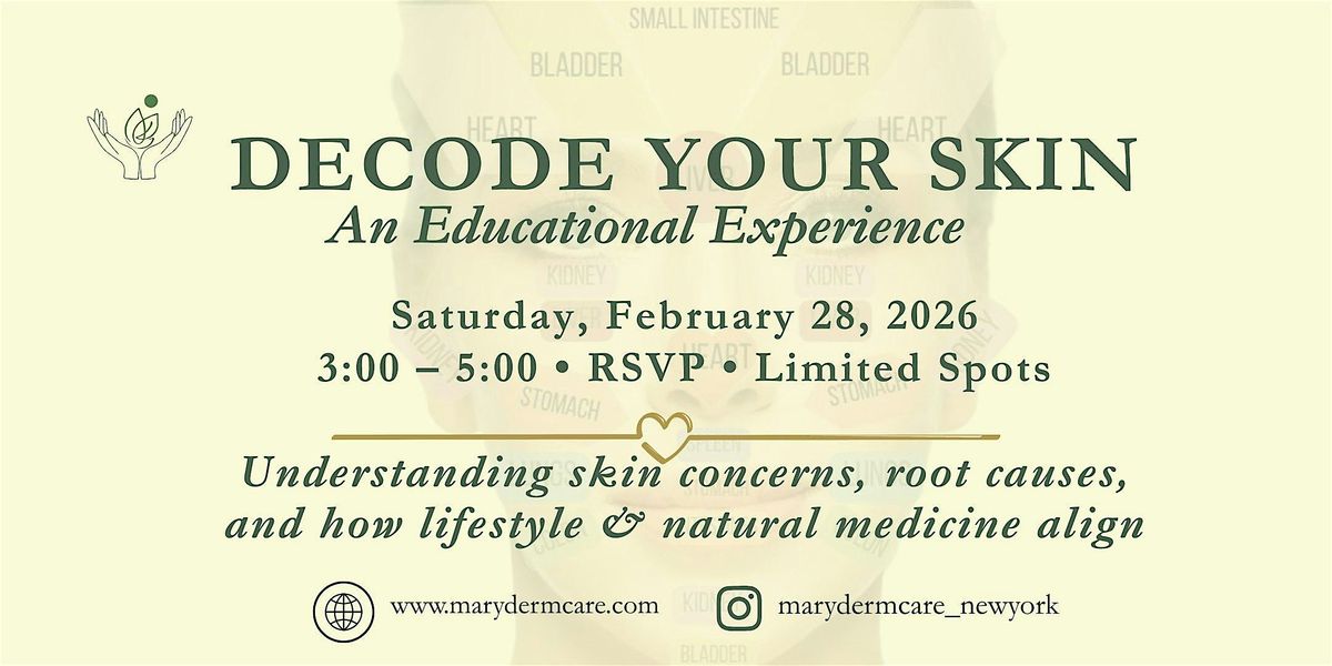 Decode Your Skin: An Educational Experience is a Love Month learning session designed to help you better understand your skin concerns, their possible root contributors, and how lifestyle and natural medicine align to support skin health and longevity.