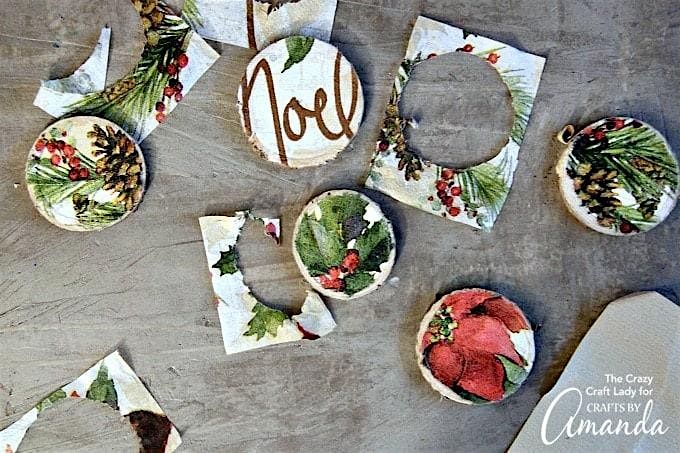 - Cut out: Designs are cut from paper, magazines, wrapping paper, or special decoupage sheets - we will be using pretty Christmas napkins.