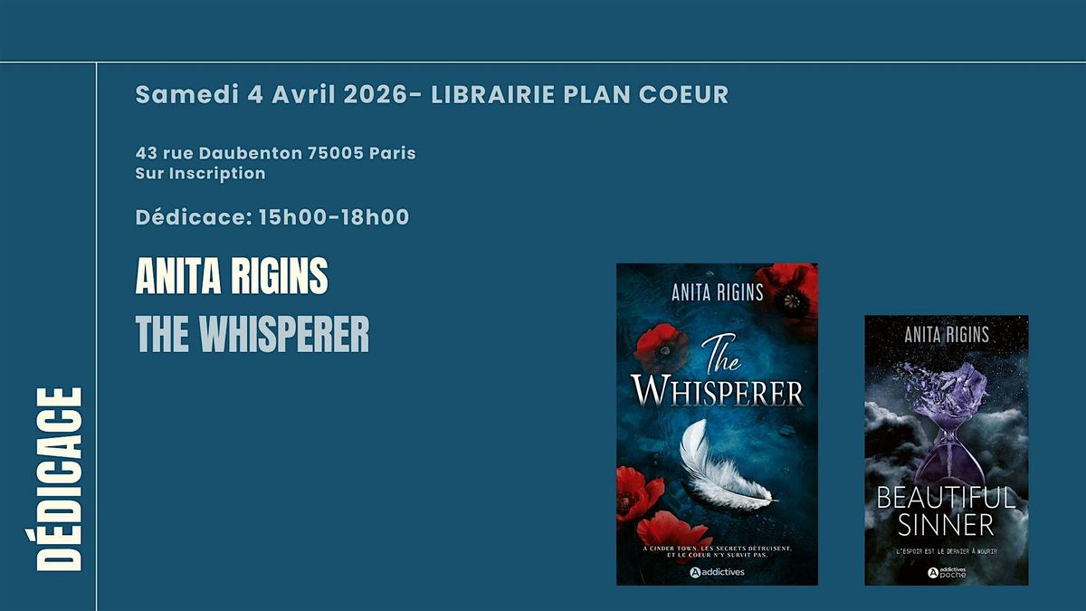 🪶la dédicace est sur ticket et limitée à deux livres par personne, dont sa nouveauté The Whisperer. Il est possible de pré-commander le livre à la librairie et de le récupérer sur place le jour de la dédicace. ( si vous prenez un deuxième livre à dédicacer : cela peut être n’importe lequel de son catalogue. )