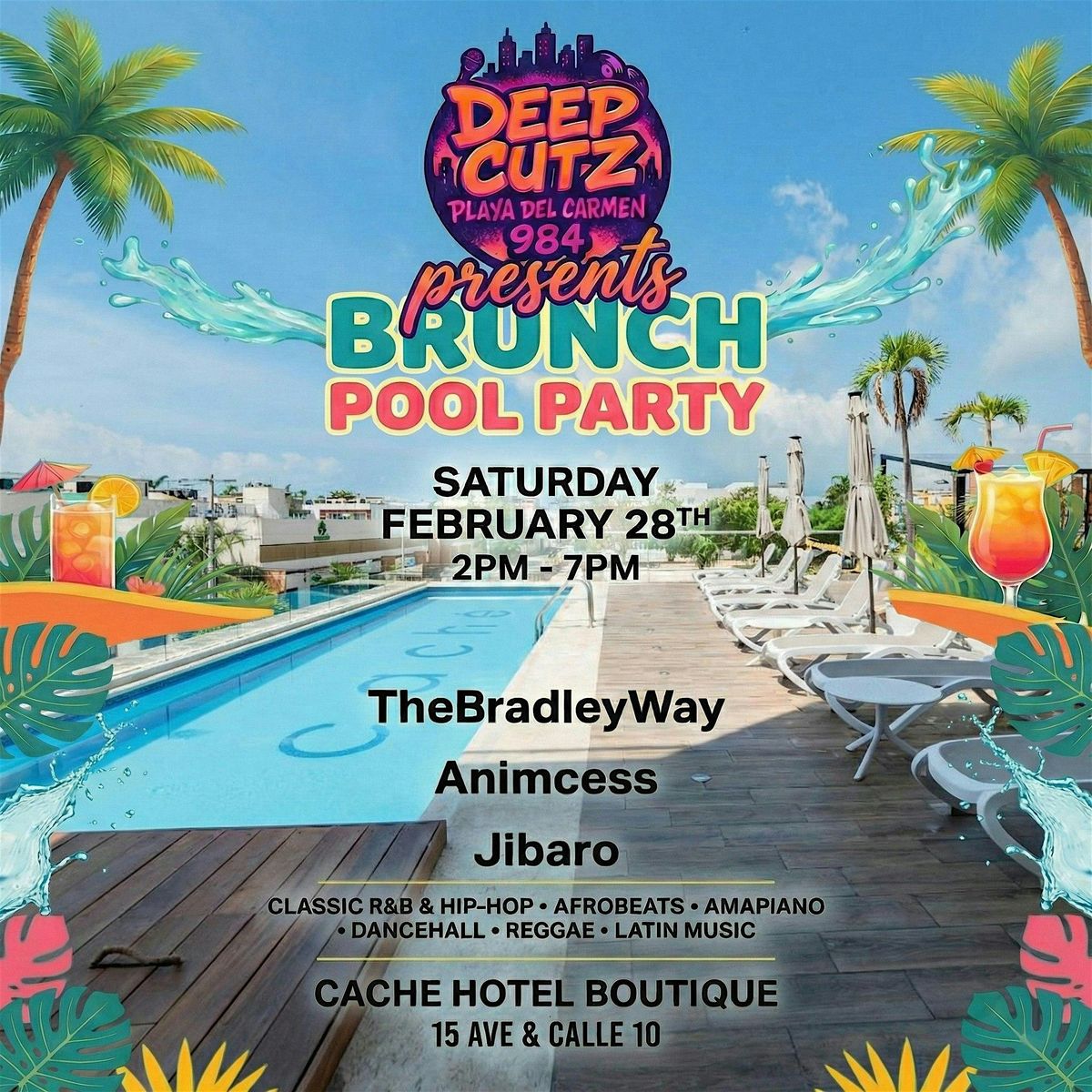 🎧 The Lineup: @thebradleyway , @animcess , @jibaro.dj 📍 Location: @cachehotelplaya (15 Ave & Calle 10) 🗓 Date: Saturday, Feb 28th ⏰ Time: 2 PM - 7 PM