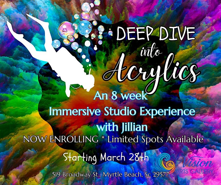 Deep Dive: The Art & Alchemy of Acrylics is an 8-week immersive course designed to build confidence, skill, and creative freedom through color, movement, texture, and intentional play. Guided by professional instruction in a supportive gallery setting, students will learn expressive acrylic techniques while discovering their own unique artistic voice.