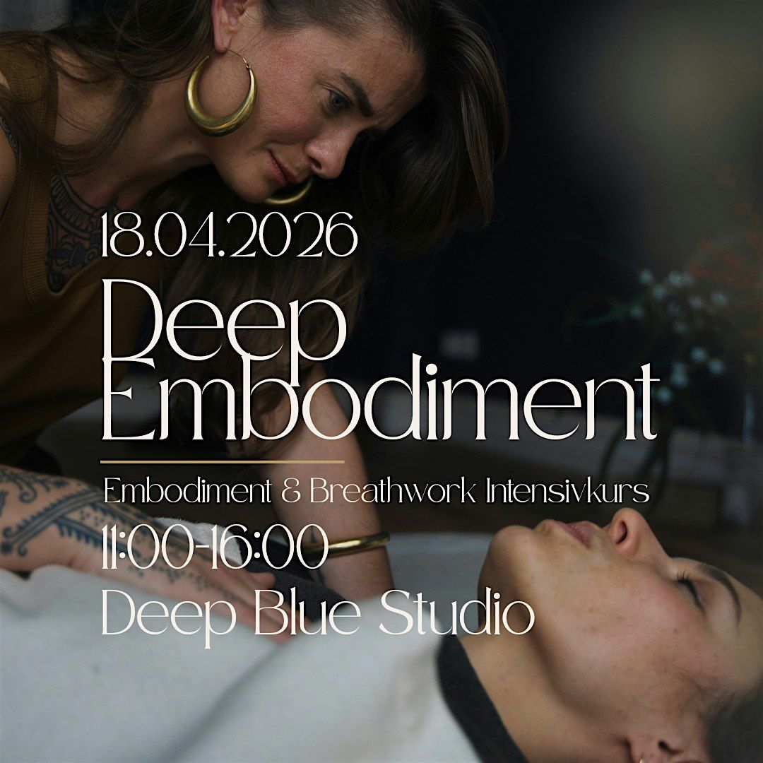 Deep Embodiment vereint intuitive Bewegungen und den verbundenen Atem mit spiritueller Medialität. In der Essenz ist es ein Aufwachraum, in dem die Seele tief verkörpert werden kann. Die Symbiose aus intuitiven Bewegungen und dem verbundenen Atem machen es möglich, alte emotionale und körperliche Speicherungen sowie destruktive Glaubenssätze in das Licht des Bewusstseins zu bringen, um diese zu transformieren. Es ist eine Einladung zur Selbstermächtigung, die Verantwortung für die eigenen Gefühle, Handlungen und Glaubenssätze bewusst zu übernehmen. Der verbundene Atem lehrt dich, dich selbst zu führen und zu halten.