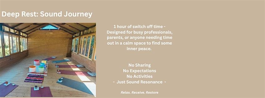 You simply arrive, set up your space, lie down, and allow the sound to do the work.
