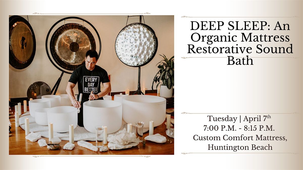 Join us for a unique collaboration with Custom Comfort Mattress in Huntington Beach with a special edition of our DEEP SLEEP: An Organic Mattress Restorative Sound Bath!