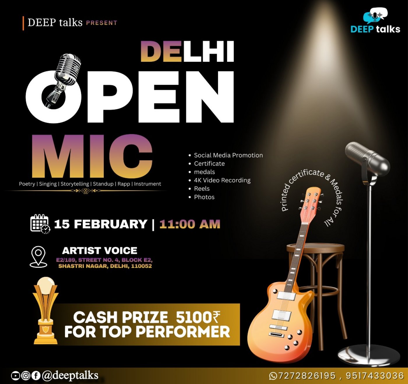 Poetry | Shayari | Singing | Stand-up Comedy | Rap | Music | Acting | Instrumentals