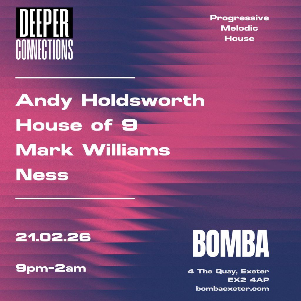 Deeper Connections returns to Bomba for a night of progressive and melodic house music.Music Genres : House, Tech House, Prog House