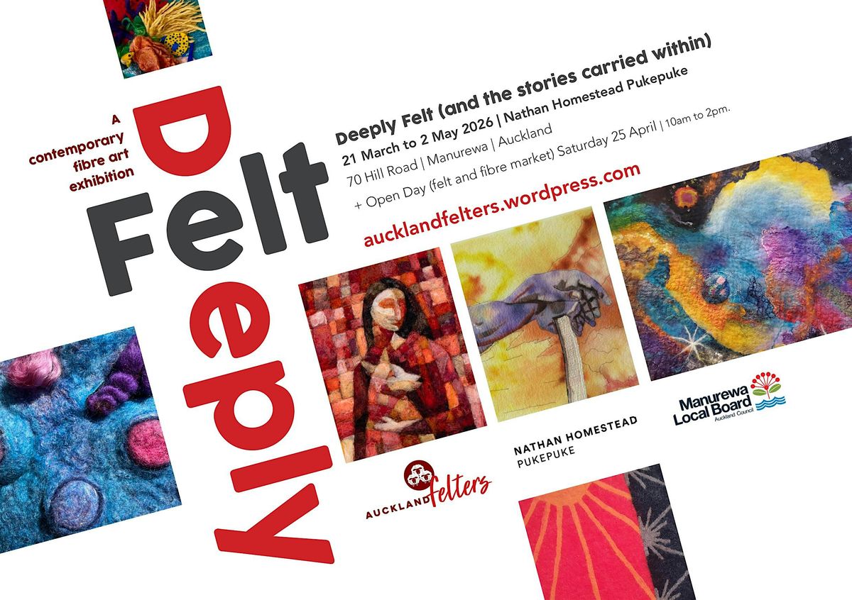 Deeply Felt (and the stories carried within) is a group art exhibition by Auckland Felters, on now at Nathan Homestead Pukepuke from 21 March to 2 May 2026.