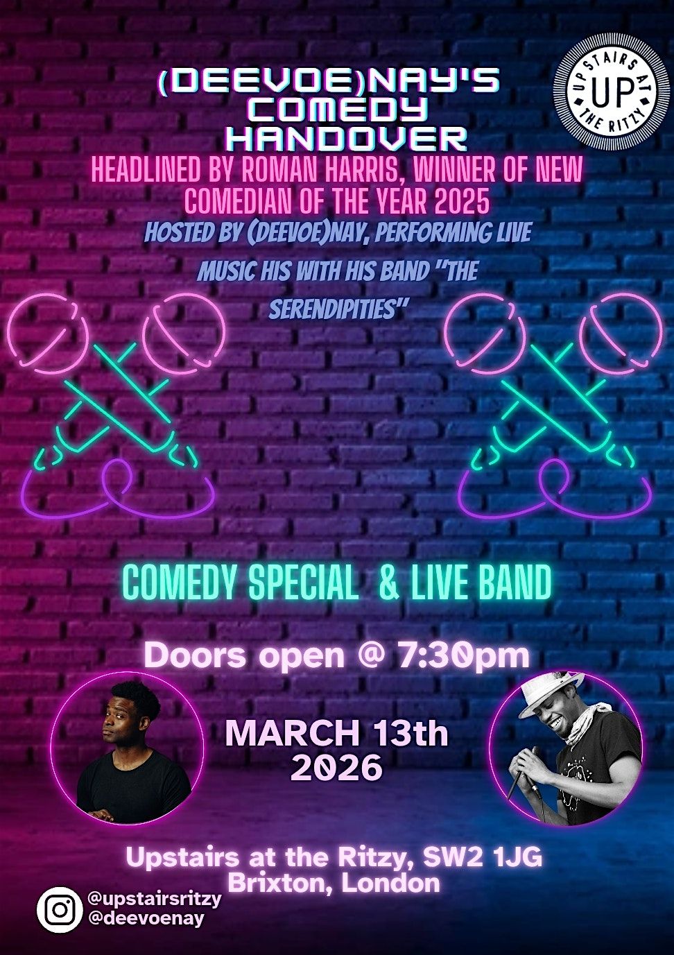 Award winning stand-up comedy & live band music. A special night that will end with a live band jam in three heart of Brixton!