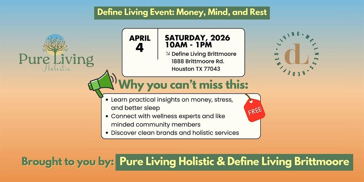 Pure Living Holistic, in collaboration with Define Living, invites you to a special Live Well experience designed to explore the intersection between money, mind, and rest.