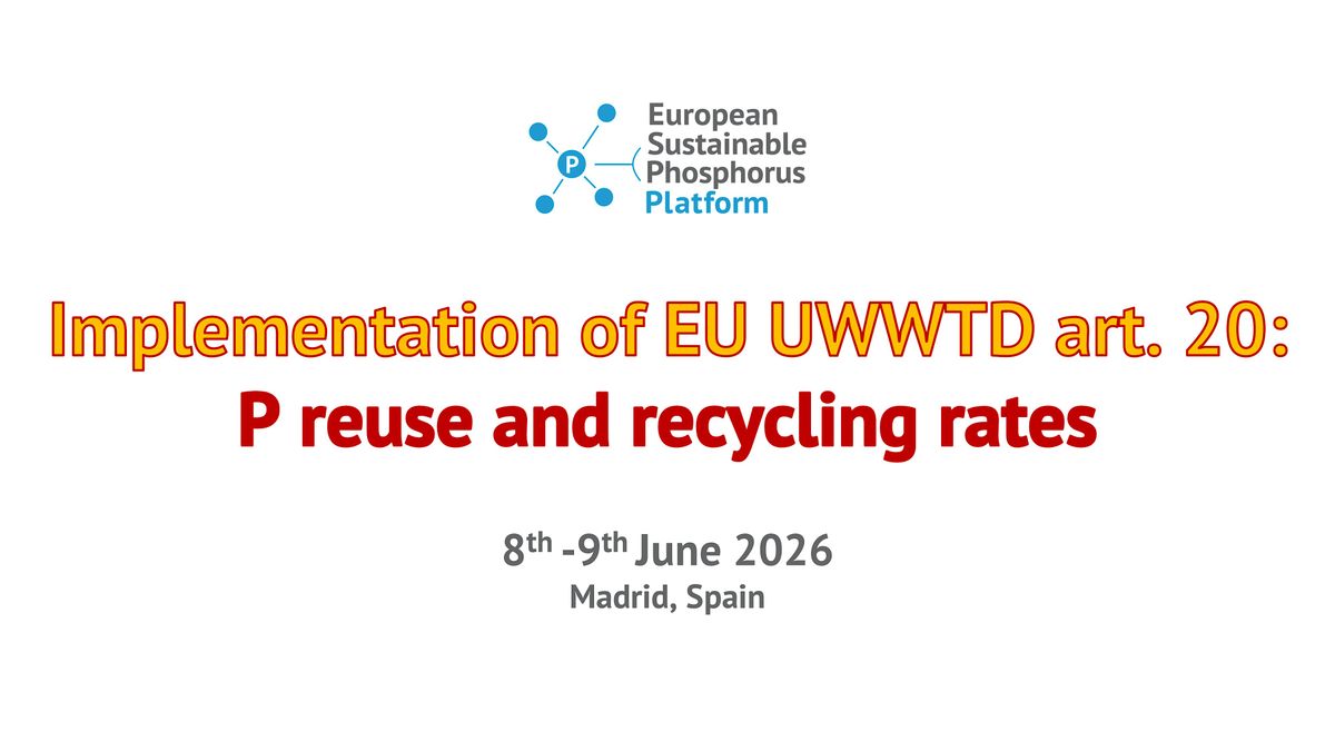ESPP workshop to input to the development of proposals for phosphorus “reuse and recycling rates” from sewage, update on P-recovery, with participation of the European Commission Joint Research Centre (JRC). This workshop follows JRC’s first draft report on current sludge processing and destinations, and on phosphorus recycling technologies. It will include presentation and discussion of the Eunomia study on questions for policymakers for possible ‘quotas’ for recycled P in fertilisers. Site visits to P-recovery and P-removal operations and research.