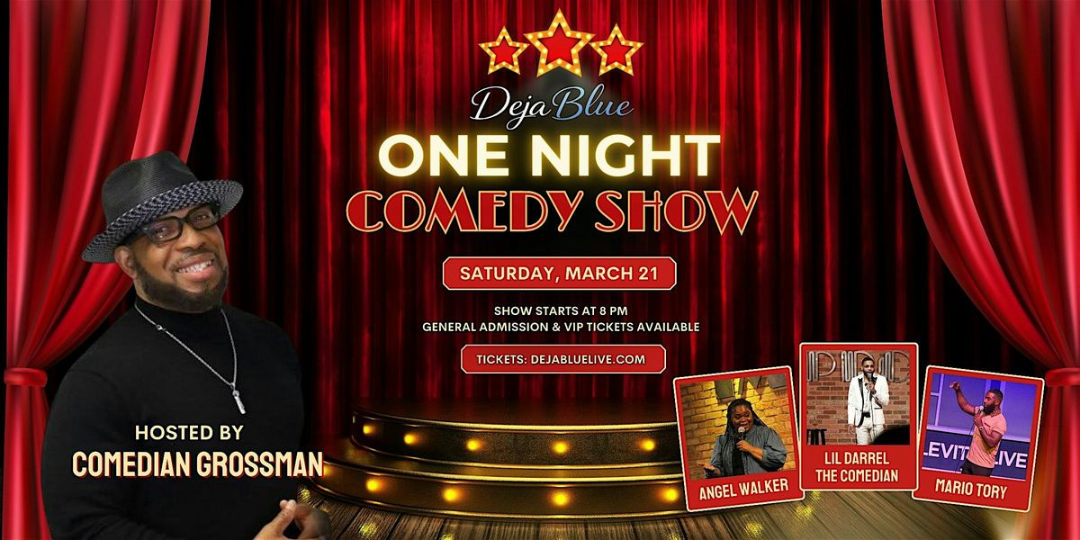 Get ready for a night of non-stop laughter at Deja Blue! Join us for an unforgettable evening featuring a stacked lineup of hilarious comedians, hosted by the always-entertaining Comedian Grossman.
