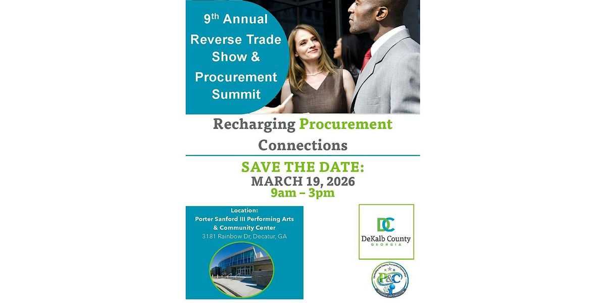Welcome to the DeKalb County Government 9th Annual Reverse Trade Show & Procurement Summit! Join us at the Porter Sanford III Performing Arts & Community Center for a day filled with networking, learning, and business opportunities. Connect with government agencies, prime contractors, and small businesses in a unique reverse trade show format. Attend workshops and panels to gain insights into government procurement processes and best practices. Don't miss this chance to grow your business and build valuable relationships. See you there!