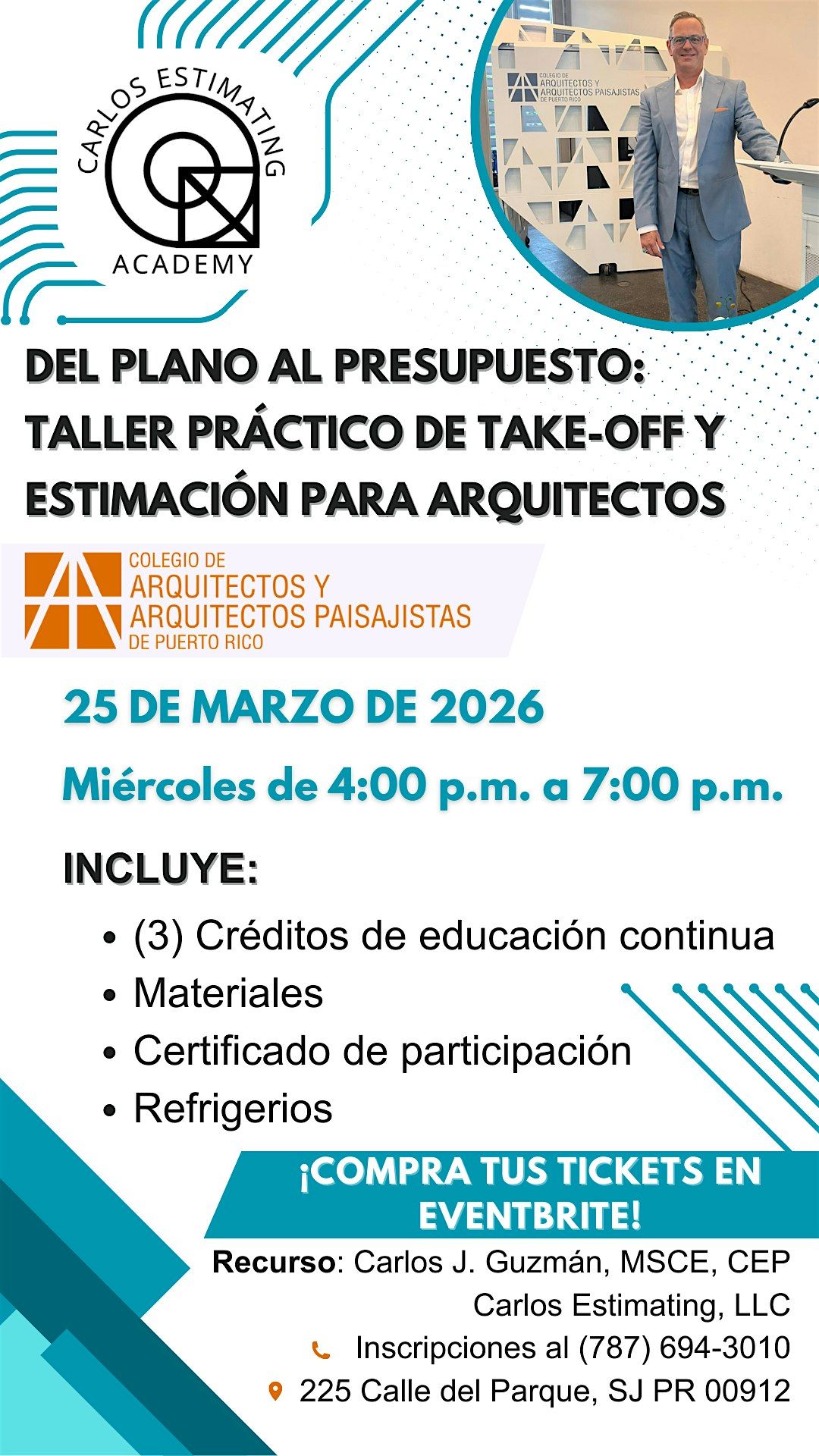 ¿Quieres llevar tus proyectos al siguiente nivel? Este taller presencial te enseña cómo hacer take-offs y crear presupuestos realistas para tus proyectos. Ideal para arquitectos que quieran dominar estas herramientas claves y optimizar su flujo de trabajo. ¡Ven a aprender, practicar y compartir con colegas en un ambiente relajado y profesional!