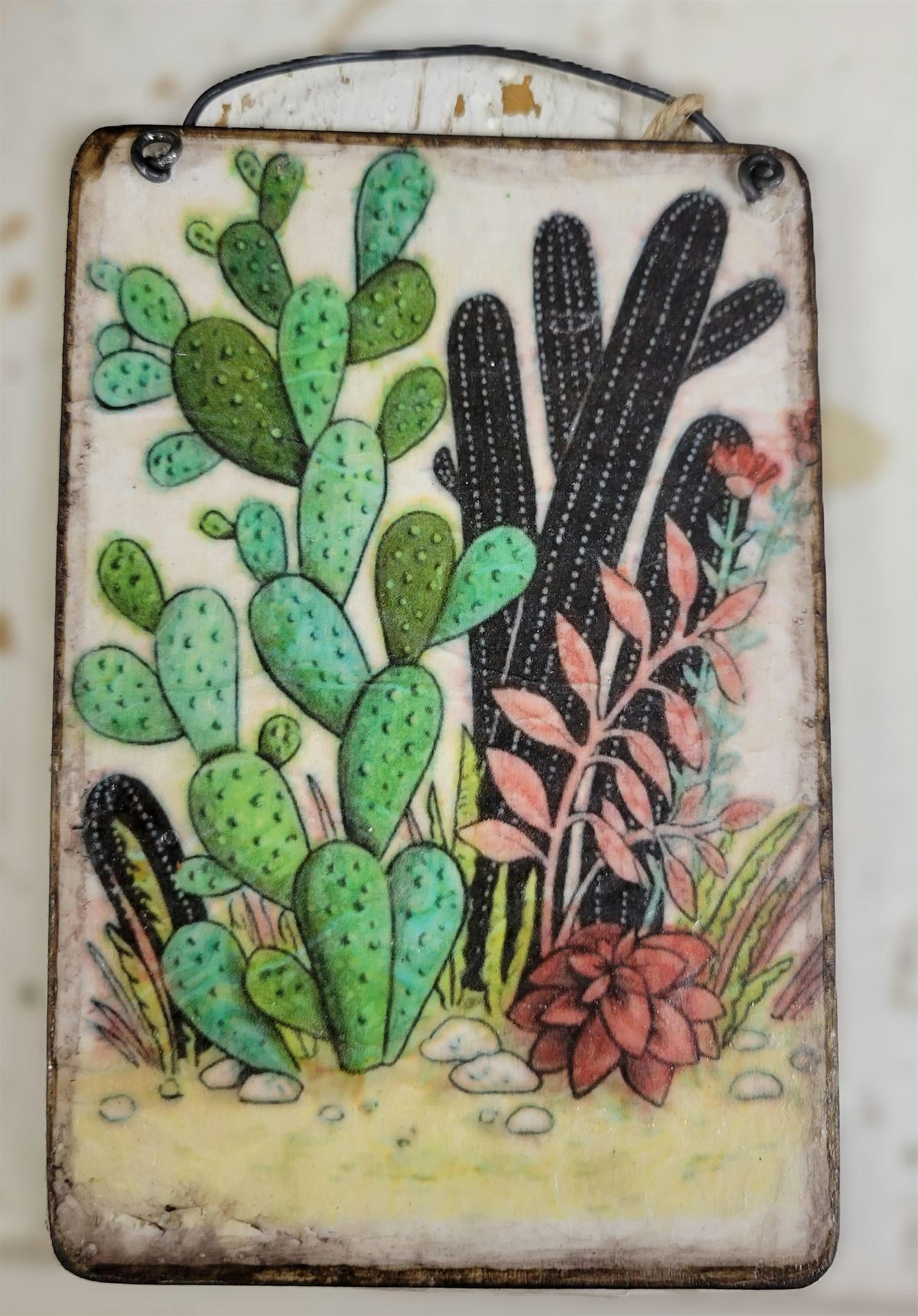 With step-by-step instructions and several different pictures to choose from, you will decoupage four (4) different cactus pictures or desert scenes onto premade wood cutouts.