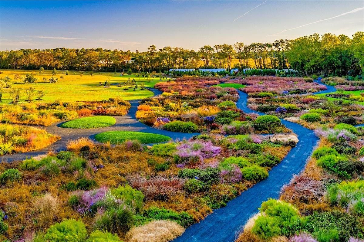 You will learn about the history of the Delaware Botanic Gardens as well as all its completed features on the 37-acre property. It is a walking tour. The pathways are all ADA compliant. A golf cart can be available if needed. You will see the world-renowned Piet Oudolf 2-acre meadow which blooms from June through fall with 70,000 perennial plants & grasses. The other areas you will also see are: