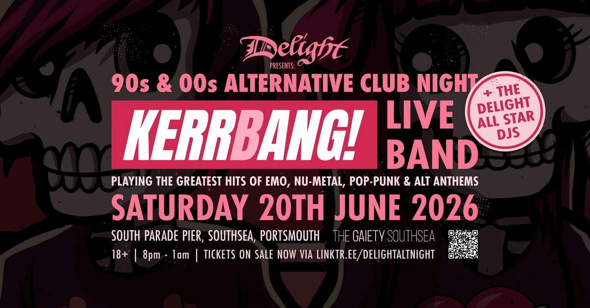 Remember when music was loud, nights were messy and every song felt like your song?Delight is summoning the 90s & 00s alternative era back for one massive Saturday night reunion on South Parade Pier.LIVE on stage:KERRBANG! — the ultimate alternative party band, dripping in nostalgia and smashing through the biggest throwback anthems from the golden era of alt, nu-metal, pop-punk, grunge and emo.Expect wall-to-wall singalongs, bouncing pits and absolute scenes from start to finish.