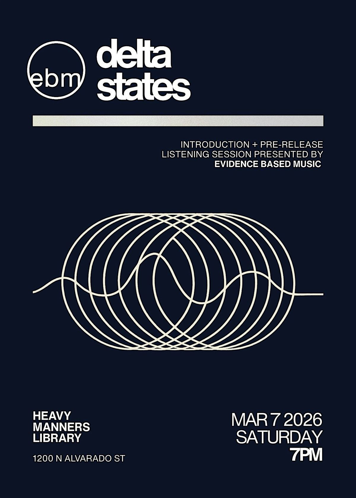 Join Evidence Based Music at Heavy Manners Library for a pre-release listening session introducing Bueno Brain Entrainment, Vol. 1: Delta, out on March 13th in observance of World Sleep Day.