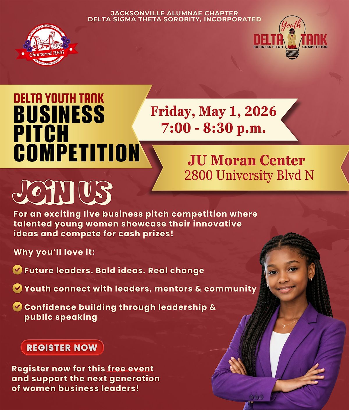 Welcome to the Delta Youth Tank Business Pitch Competition! This exciting event showcases young talent and provides them with a platform to develop their entrepreneurial skills. Contestants will receive valuable feedback to help develop their ideas and the top pitches will win cash prizes! Join us at the Moran Center to witness the creativity and potential of tomorrowโs business leaders! See you there!
