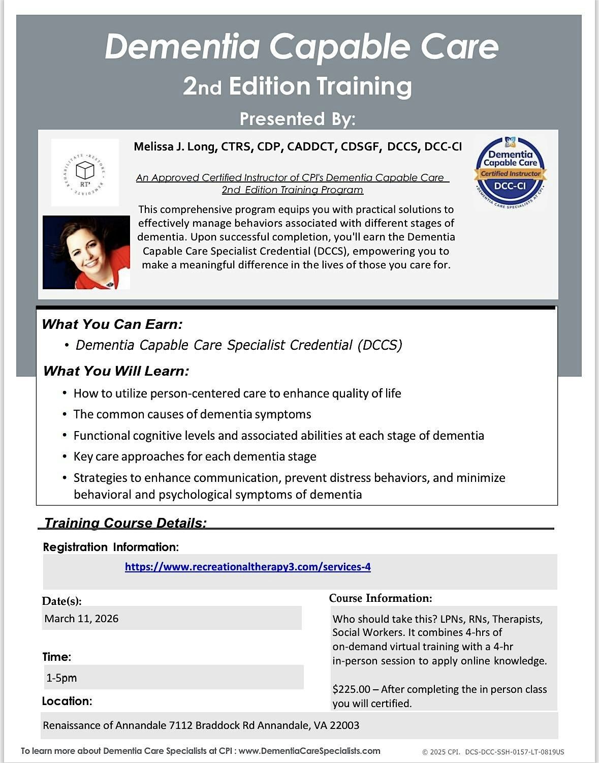 This comprehensive program equips you with practical solutions to effectively manage behaviors associated with different stages of dementia. Upon successful completion, you'll earn the Dementia Capable Care Specialist Credential (DCCS), empowering you to make a meaningful difference in the lives of those you care for.