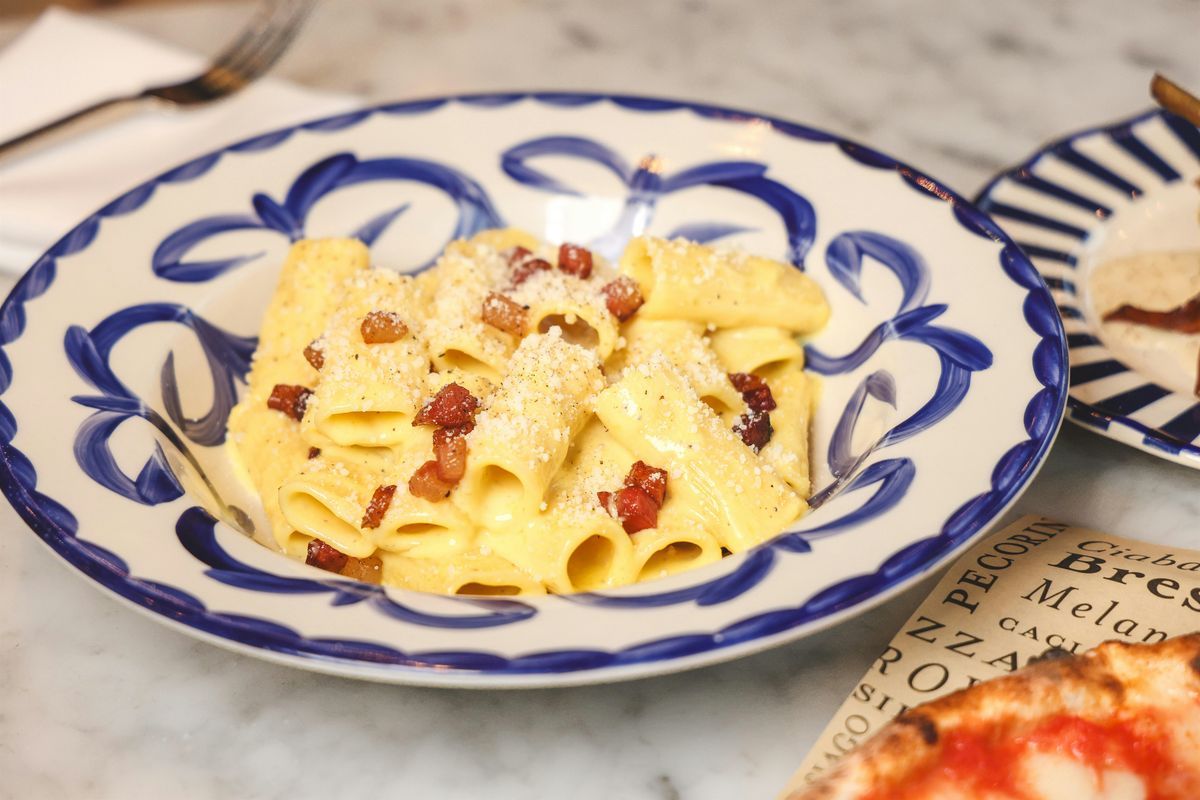 About this Dish: Pasta alla Carbonara is an iconic Roman dish made with guanciale (cured pork jowl), whole eggs and egg yolks, grated pecorino cheese, salt and pepper. A simple yet savory recipe that Romans are proud to call their own.