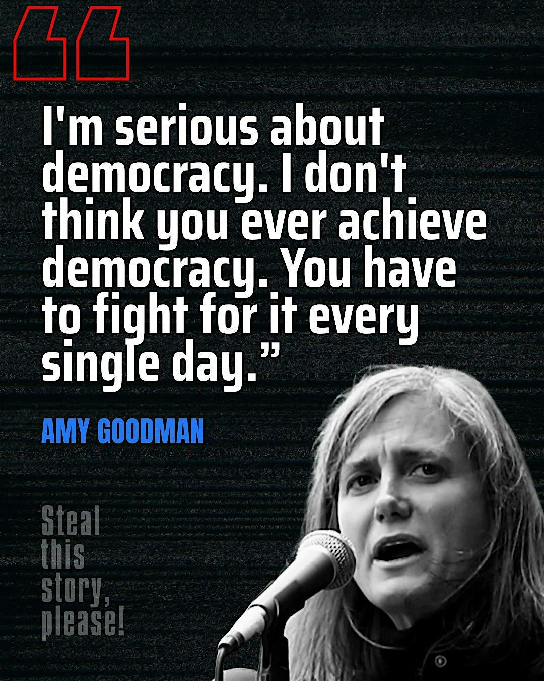 STEAL THIS STORY, PLEASE!, winner of nine audience awards, the gripping portrait of iconic independent journalist Amy Goodman is directed by Oscar nominated filmmakers Carl Deal and Tia Lessin.