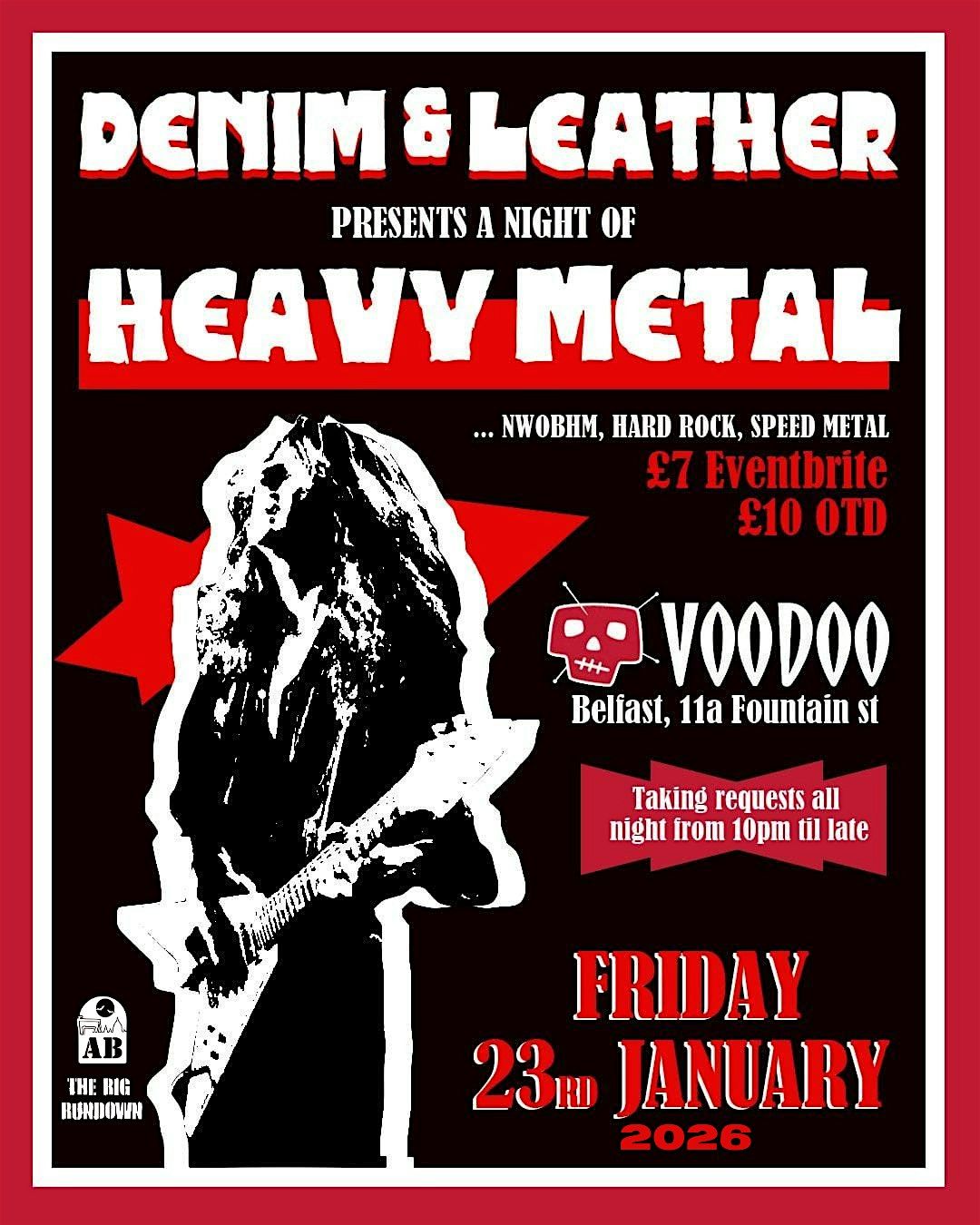 Get ready to rock out at DENIM & LEATHER, the ultimate Rock & Metal club night! Join us in person for a night full of heavy riffs, leather jackets, and killer vibes. Whether you're a die-hard metalhead or just love rocking out, this is the place to be. Don't miss out on a night of pure energy and epic tunes -taking requests all night!