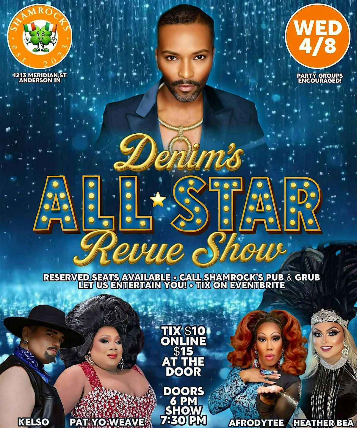 Let us entertain you! Denim Blake Omni and a Fierce Cast are ready to be your Mid-Week Climax: April's Cast includes; Cast Members: Denim Blake Omni and Afrodytee. Guest Entertainment includes; Former Miss Gay Indiana Heather Bea, Former Bag Lady Queen Pat Yo' Weave, and MCM MAN CRUSH MANIA 2025 FINALIST - Kelso