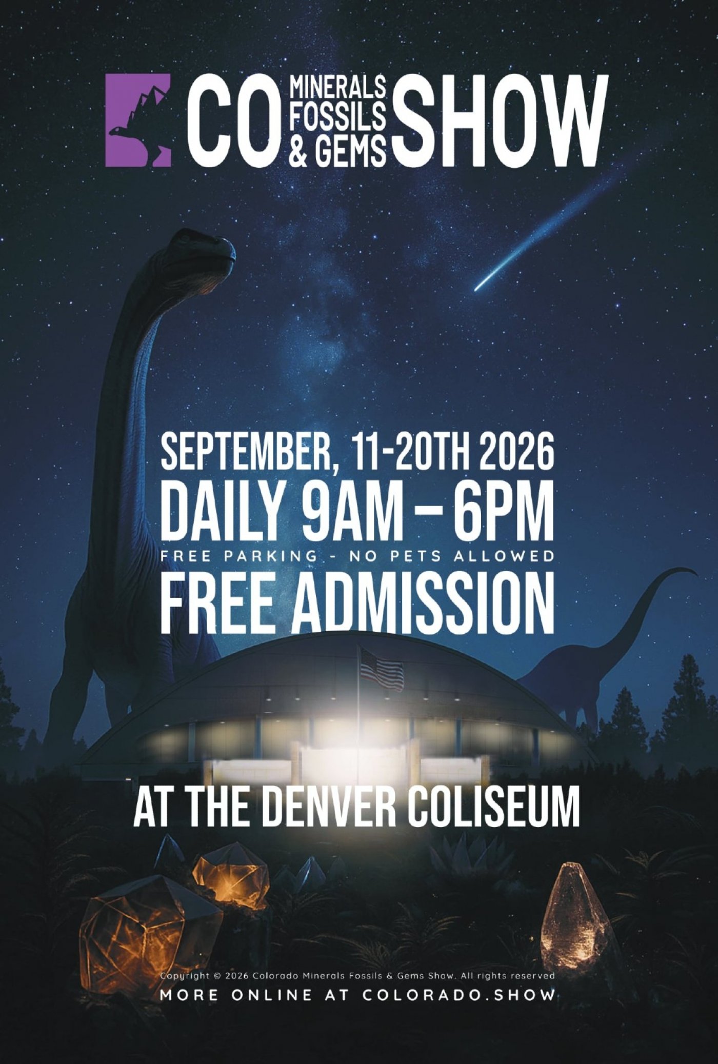 Experience the grandeur of the Denver Coliseum and join us for an unforgettable journey through Earth’s treasures at the Colorado Minerals Fossils Gems Show! The best rock show in Denver.