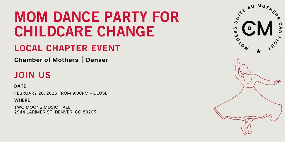 Chamber of Mothers, Moms Feeling Themselves and Two Moons Music Hall are hosting a Mom Dance Party with the opportunity to advocate for change in childcare in Colorado.
