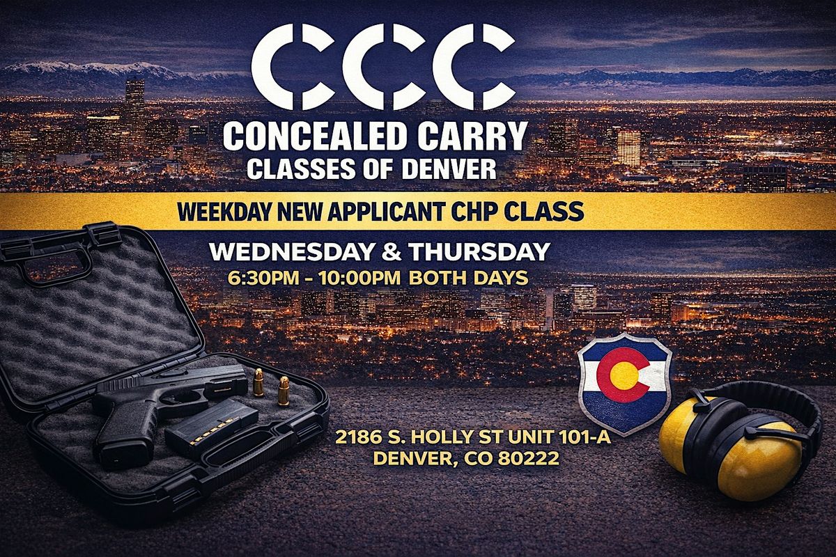 Looking for a weekday CCW class in Denver? This two-night weekday evening Colorado Concealed Handgun Permit (CHP) course is designed for busy professionals who cannot attend weekend classes.