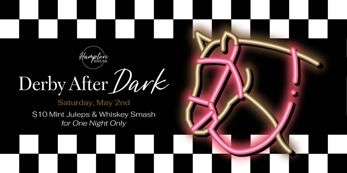 Join us for Derby After Dark at Hampton House, where the party picks up and the music takes over. From 7pm to 10pm, enjoy $10 Mint Juleps and $10 Whiskey Smashes.