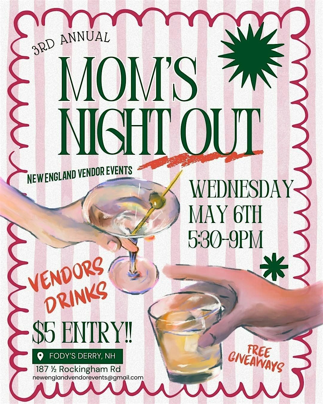 Get ready for a fun night of laughs and relaxation with fellow moms at the Derry 3rd Annual Mom's Night Out!About this Event