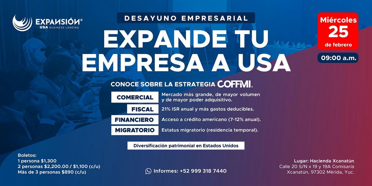 Desayuno Empresarial M\u00e9rida: Expande tu empresa a Estados Unidos.