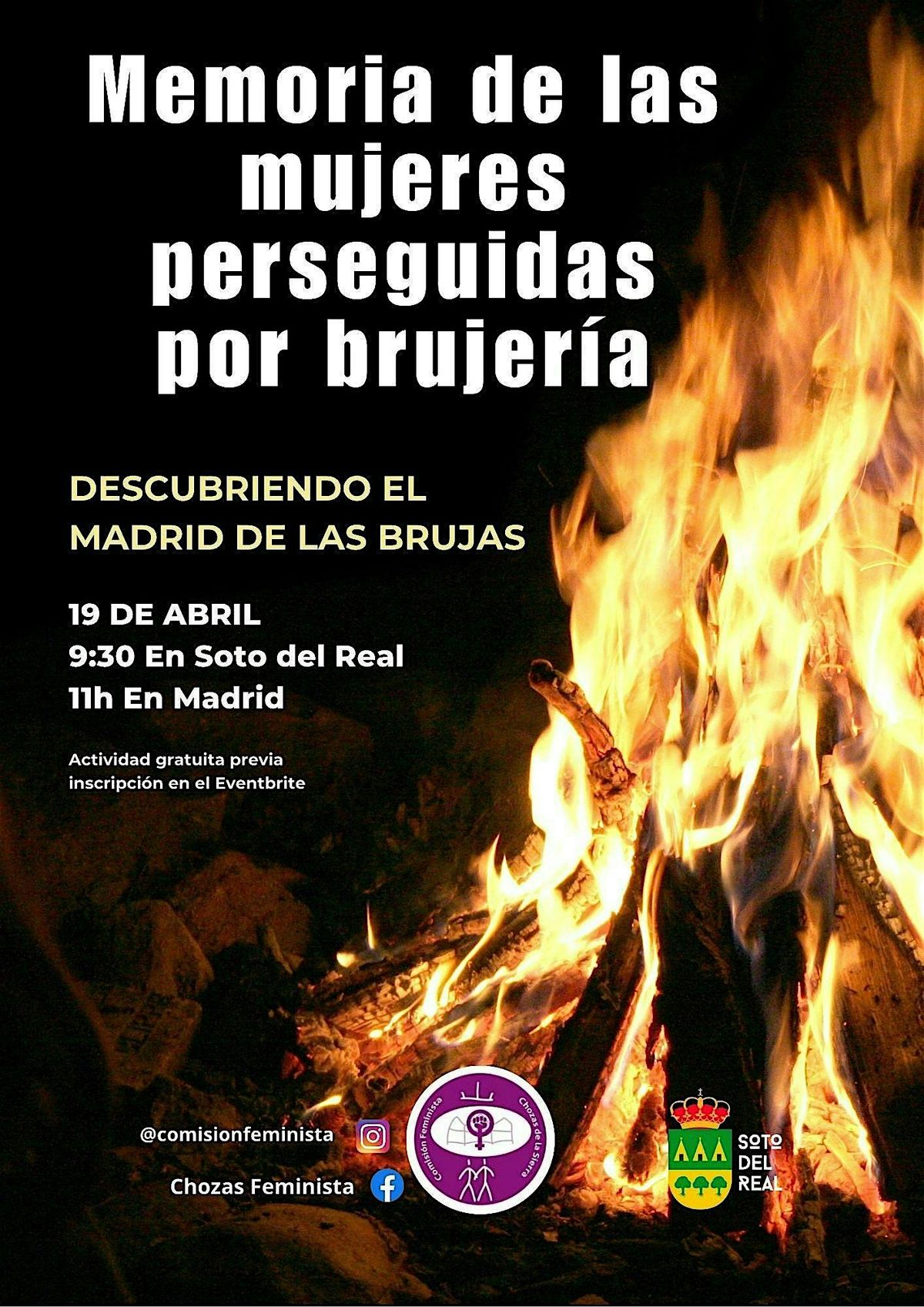 Dentro de la campaña “Memoria de las mujeres perseguidas por la brujería” os invitamos a esta actividad, el domingo 19 de abril, a las 9.30h salida desde Soto del Real, o 11h. en Madrid (el punto de partida será comunicado vía correo electrónico a las personas registradas).