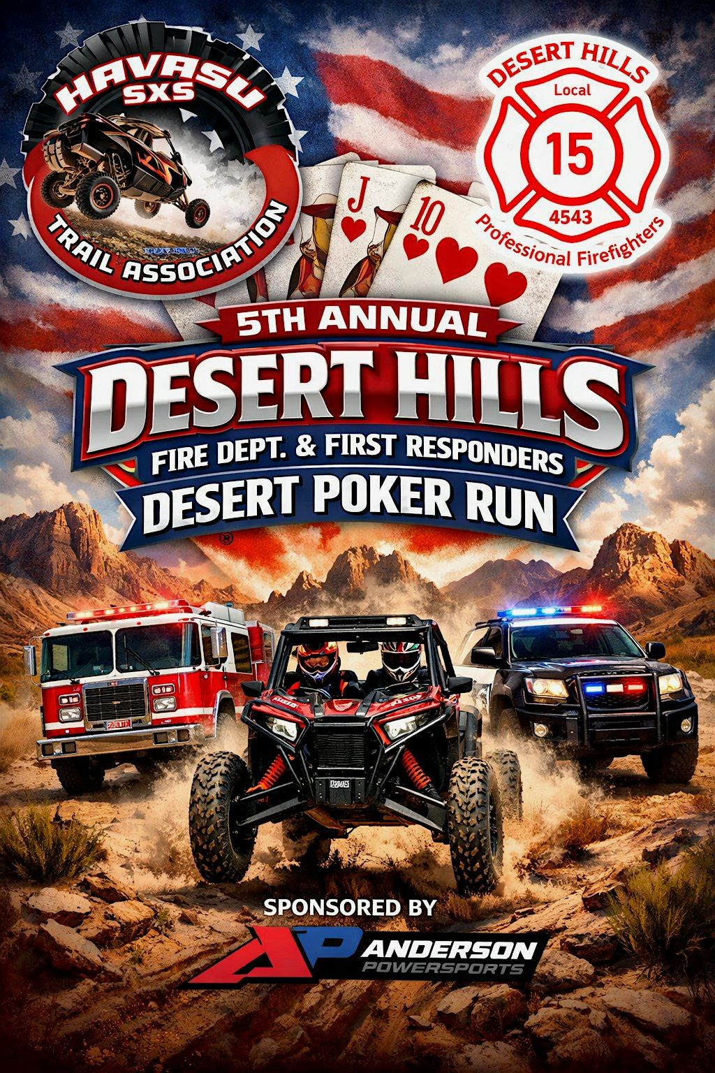 Join us for the Desert Hills Fire and First Responder Poker Run! It’s an awesome in-person event where you can ride, have fun, and support our local heroes. Whether you’re a poker pro or just in it for the good vibes, this run is all about community, excitement, and a bit of friendly competition. Don’t miss out on a day filled with great hands and even better company!