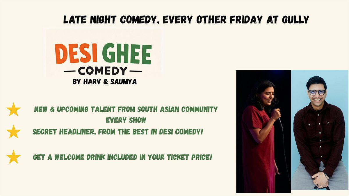 Desi Ghee Comedy is bringing the heat to Gully with a lineup fresher than a new IPL season and more dramatic than a K-serial wedding episode. From Bollywood plot twists to cricket heartbreak, from shaadi season chaos to group chat politics, nothing is off limits.