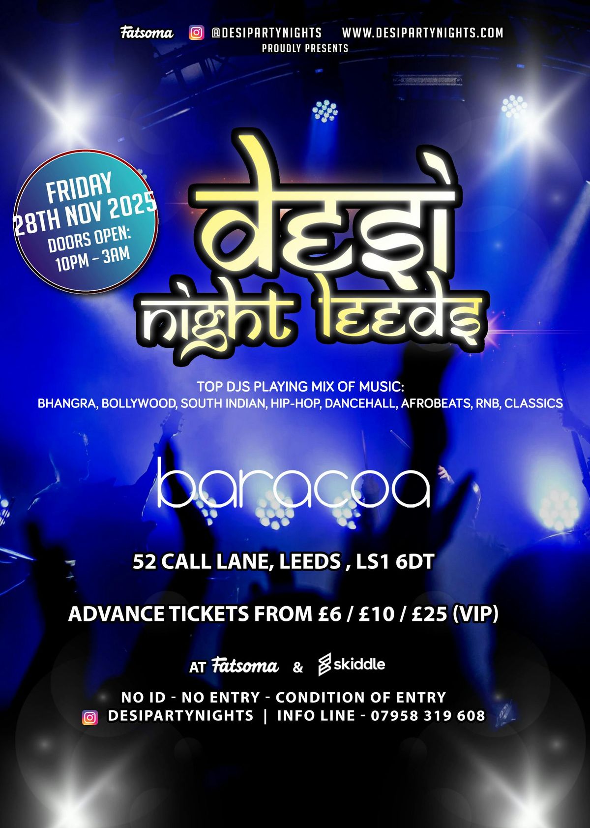 #DesiNightLeeds #BaracoaLeeds #BollywoodLeeds #BhangraLeeds #AfrobeatsLeeds #RnBLeeds #LeedsNightlife #DesiPartyNights #DesiVibes