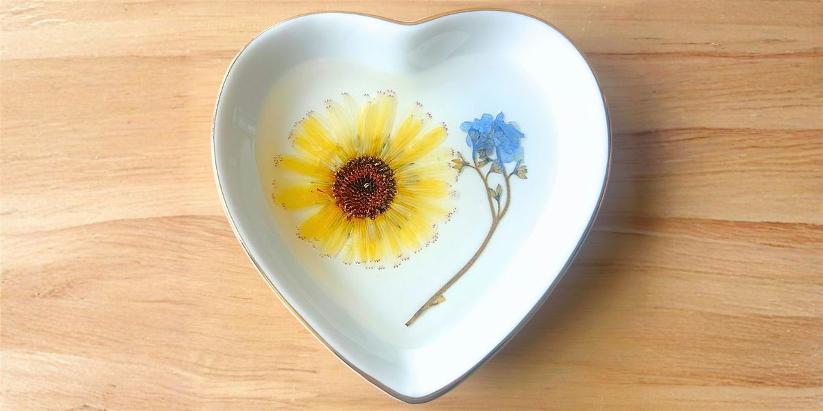 In this hands-on Design & Sip workshop, guests will create their own beautiful pressed flower ring dish. Using delicate dried florals and resin techniques, you’ll design a one-of-a-kind piece perfect for holding rings, jewelry, or small keepsakes.