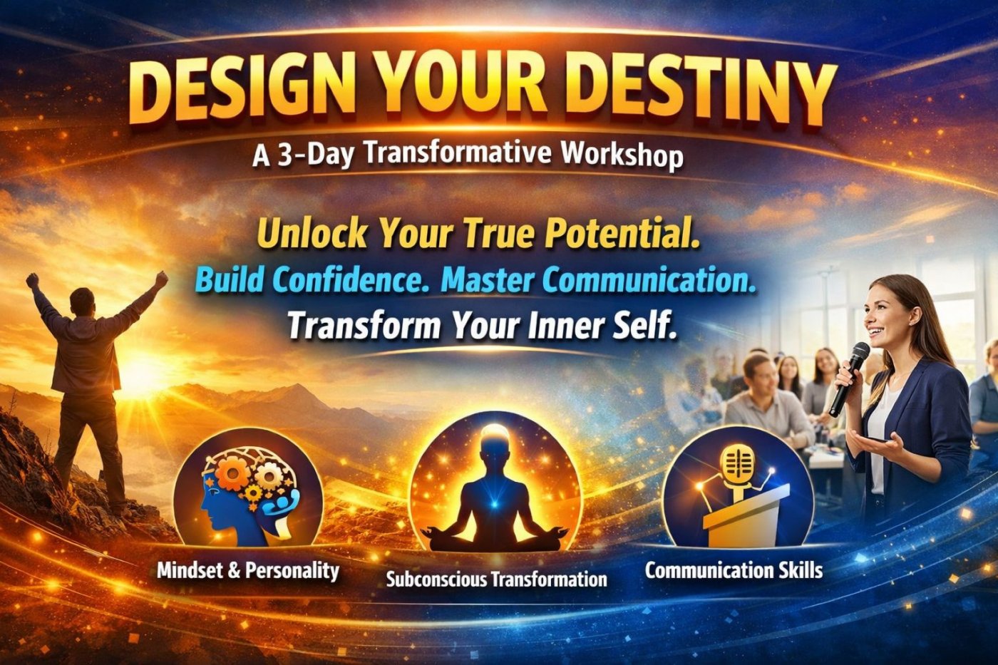 Design Your Destiny is a powerful, life-changing workshop designed to help you unlock your true potential by working deeply on your mindset, personality, and inner self. This program focuses on transformation at the subconscious level, helping you build confidence, clarity, and strong communication skills for personal and professional success.