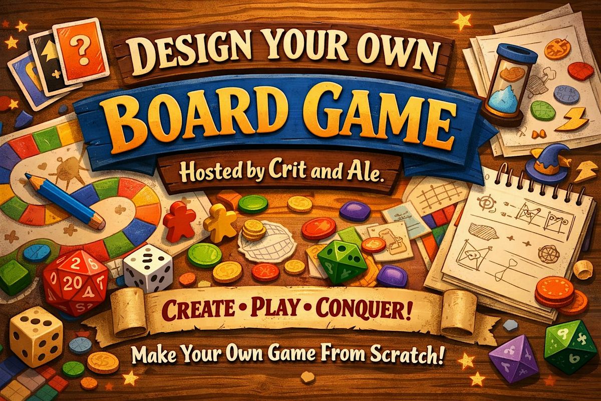 Ever played a game and thought… “I could totally make something cooler than this”? Now’s your chance.Join us for a hands-on, creativity-fueled night where you’ll design your very own board game from scratch. Whether you’re a strategy mastermind, chaotic party-game gremlin, storytelling genius, or just someone who loves a good craft night, this event is for you.We’ll provide:
