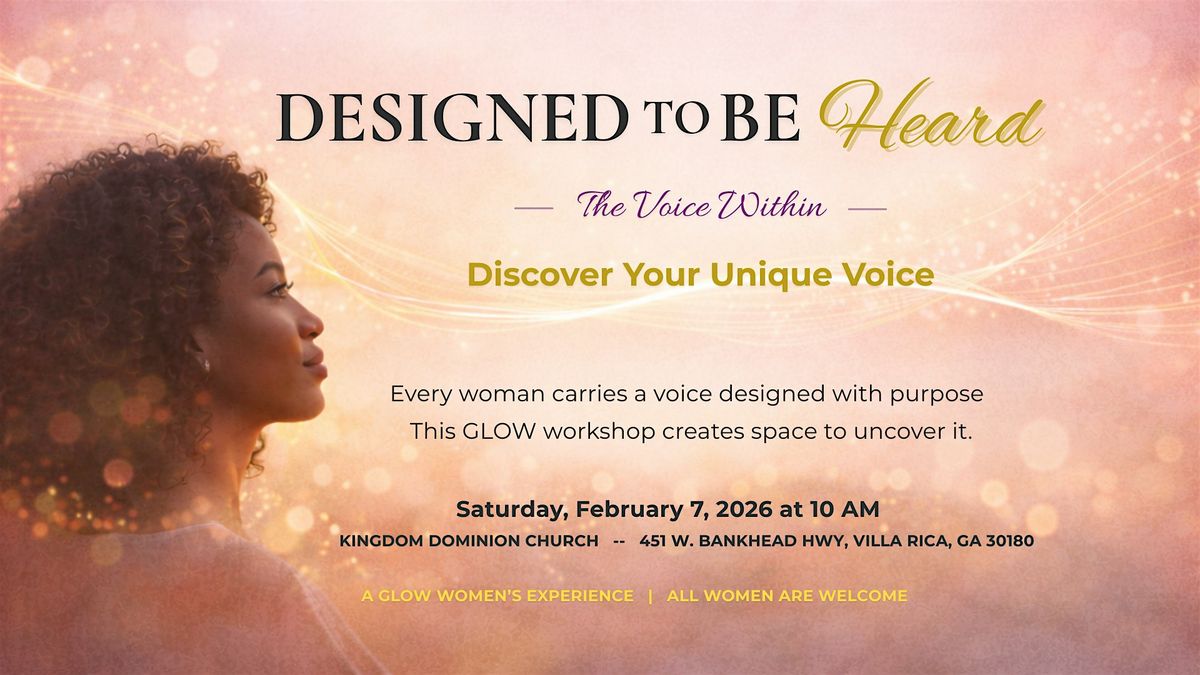 Designed to Be Heard is an empowerment experience created to help women uncover their unique voice and recognize the gift it carries. Reflective, interactive, and empowering, this experience provides a safe and welcoming environment to explore identity, confidence, and purpose.