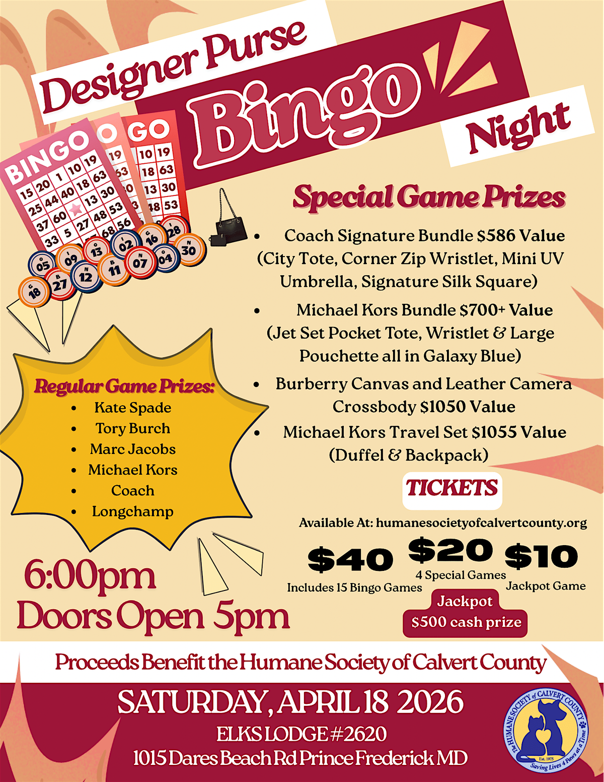 Doors open at 5:00, Games start at 6:00