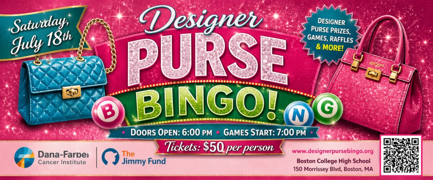 Spend an evening playing 10 games of bingo for authentic designer purses while raising critical funds for Dana-Farber Cancer Institute. Every dollar goes directly to advancing the search for cancer cures and supporting patients and families in treatment today.