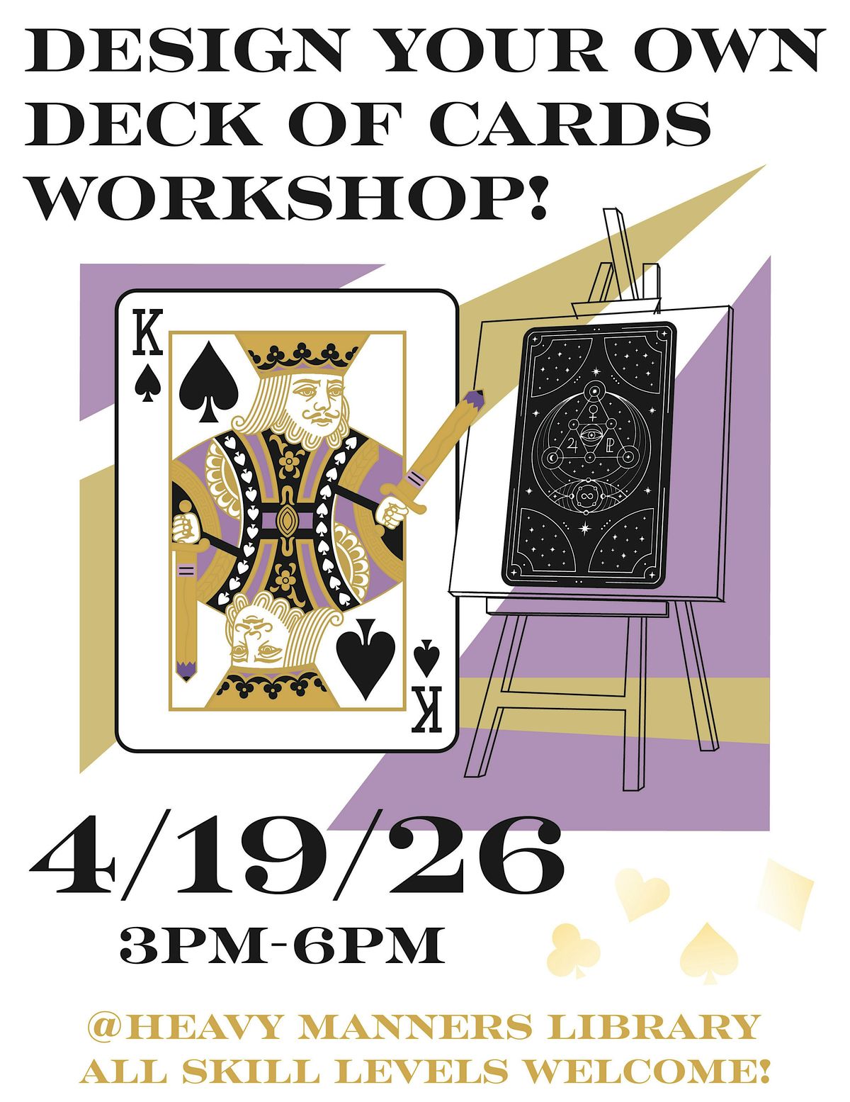 In this immersive 3-hour session, we will dive into something out of the norm. The art and craft of playing cards and tarot cards. We’ll explore theme development, symbolic language, and magical elements that give cards meaning and personality.