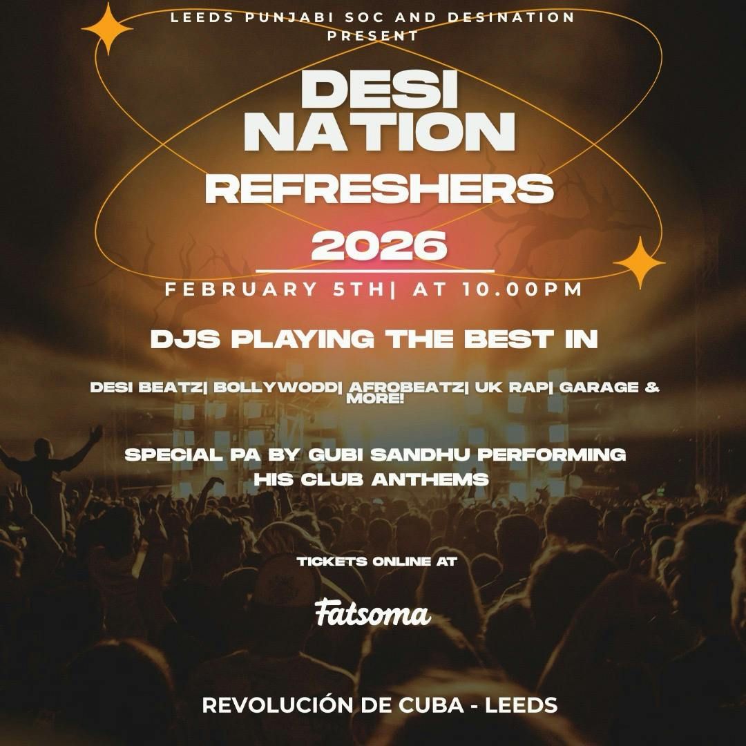 LEEDS STUDENTS THIS IS YOUR REFRESHERS TURN-UP ??DESI NATION & LEEDS PUNJABI SOCIETY REFRESHERS 2026 is taking OVER ???